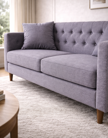 Материалы: Ткань обивки рогожка с грязе-водоотталкивающей пропиткой. Наполнение высокоэластичный пенополиуритан. Опоры натуральный бук/тонировка масло с твердым воском