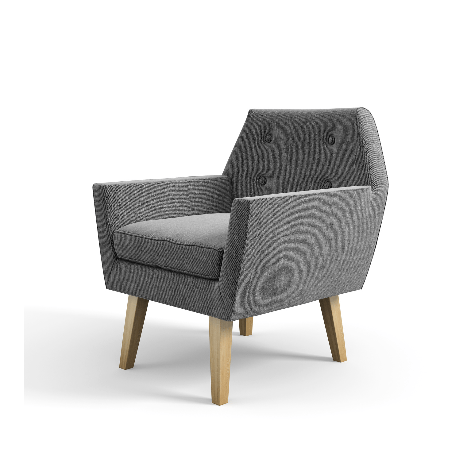 Модель отличается великолепной эргономикой и компактным размером. Геометричная форма спинки с четырьмя пуговичными утяжками придает креслу современный вид и в тоже время делает его подходящим для классических интерьеров.