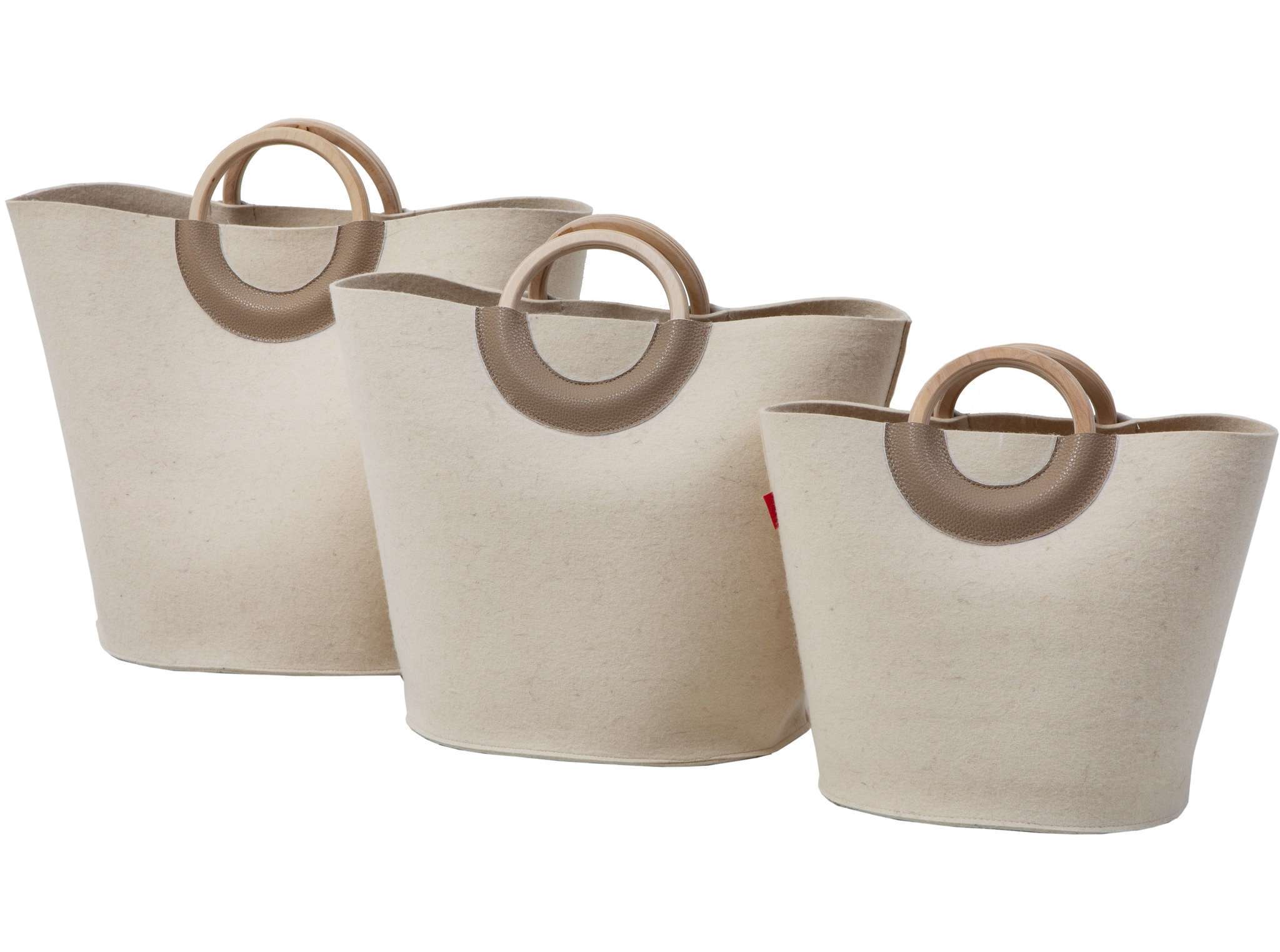 Оригинальные сумки из натурального войлока с деревянными ручками в придадут вашему дому тепло и уют. Сумки можно использовать в качестве аксессуара для хранения различных вещей, а также в качестве упаковки для подарков. Натуральные материалы будут стильным дополнением для интерьера в модном стиле Huge.