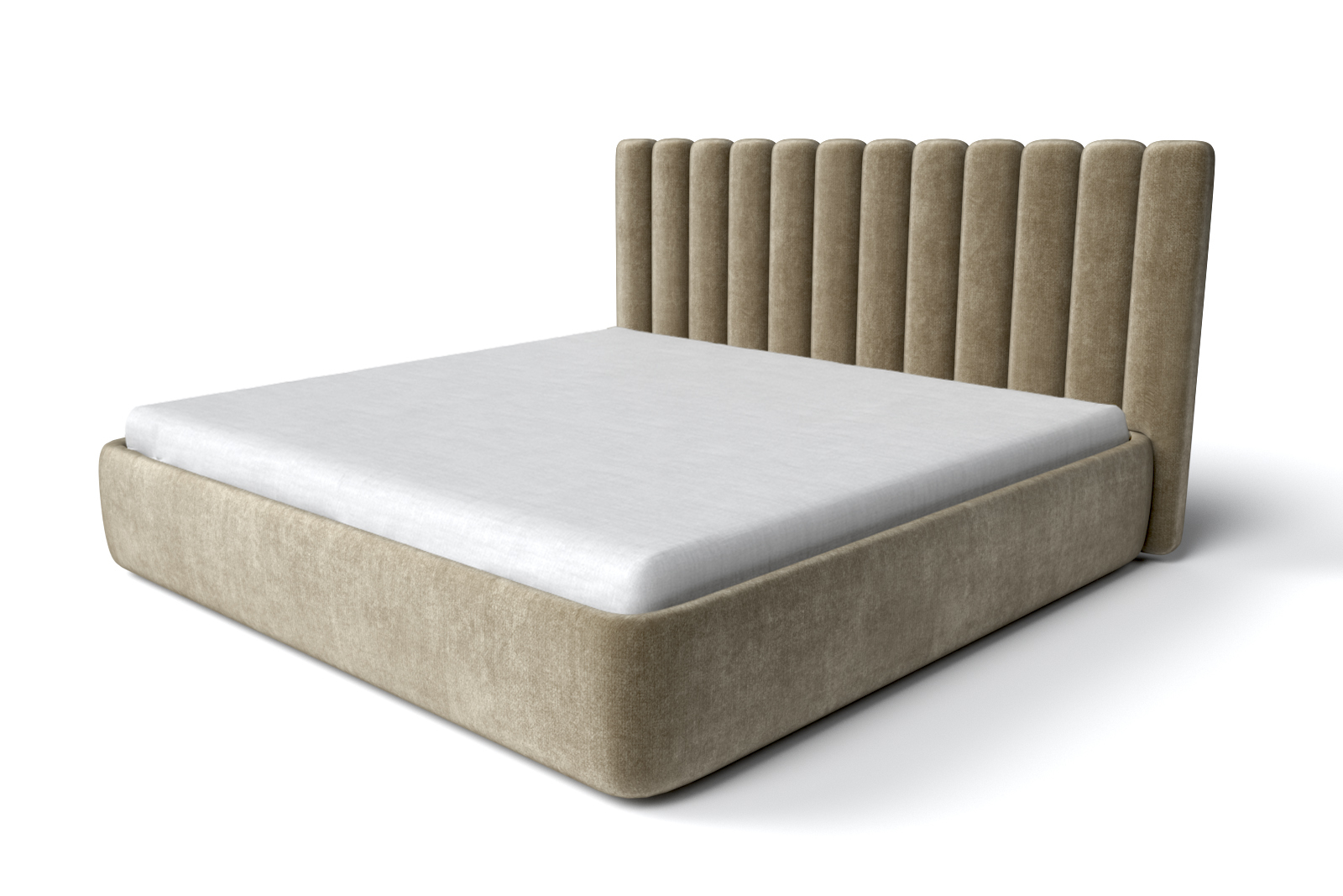 Стильная кровать с мягким изголовьем отлично впишется в современный интерьер. Декор изголовья задает интересный ритм в пространстве.
