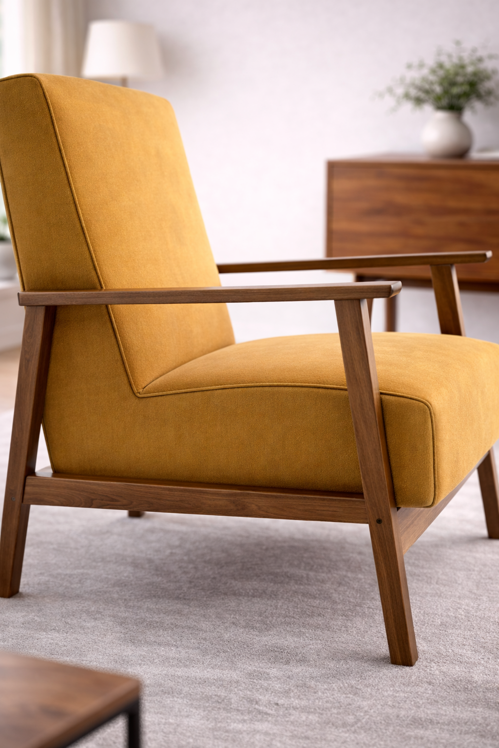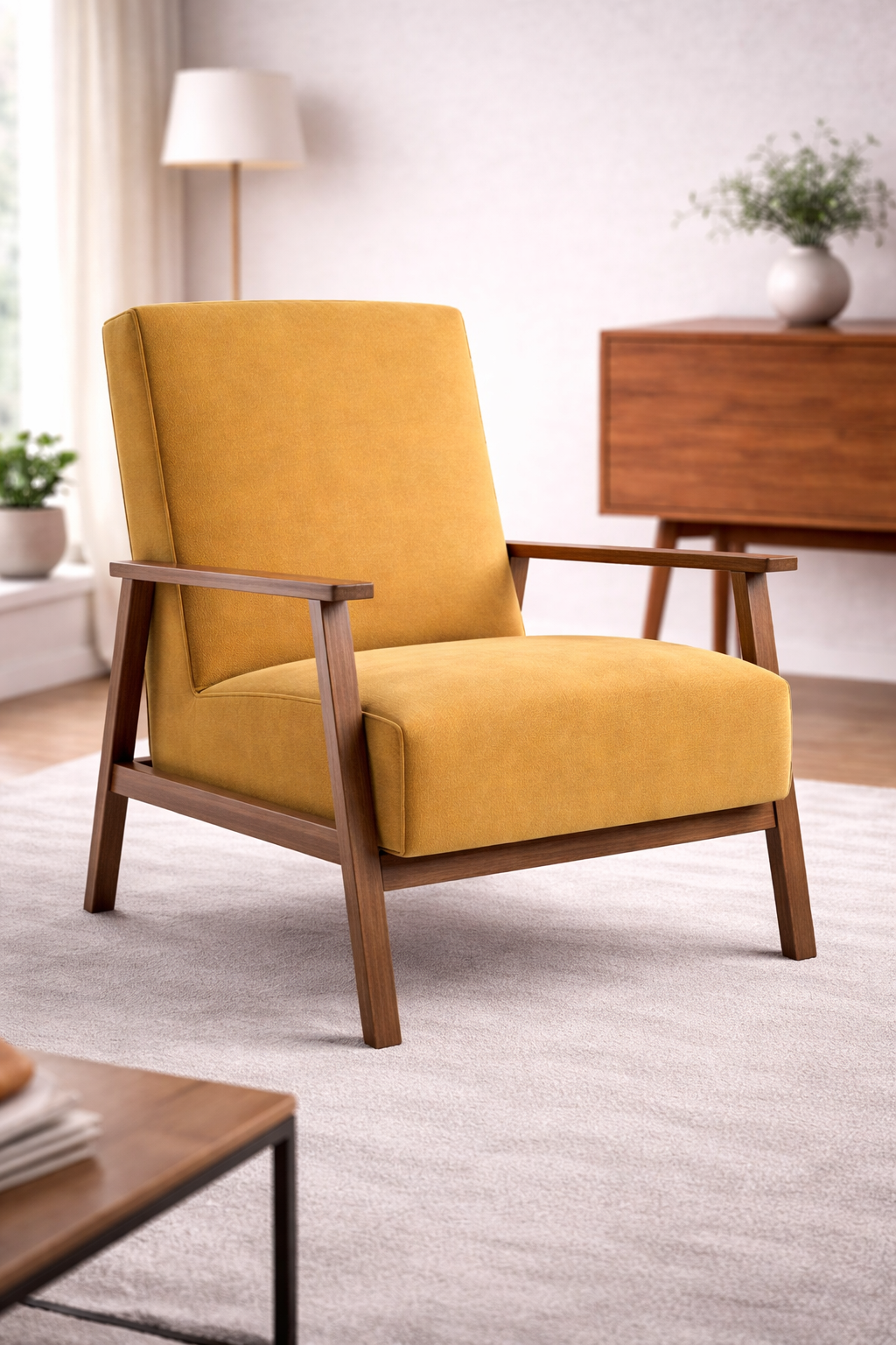 Красивое кресло в стиле 50-х с простым лаконичным дизайном удивит своим комфортом и мягкостью. Очень мягкая обивочная ткань с современной цветовой палитрой придаст особый уют и стильный вид минималистичным интерьерам в направлении Huge.