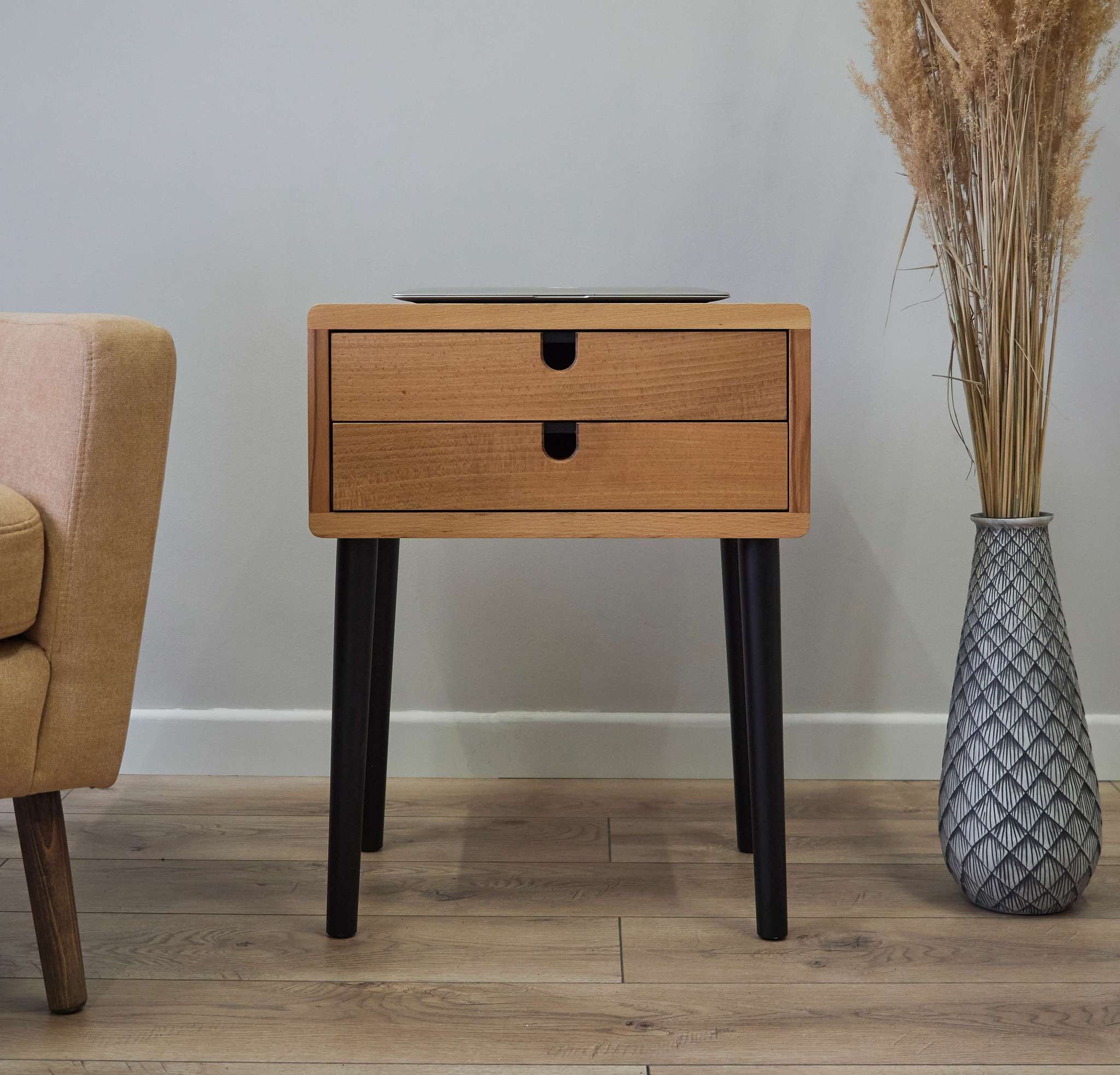 Тумба из натурального дерева с двумя выдвижными ящиками.